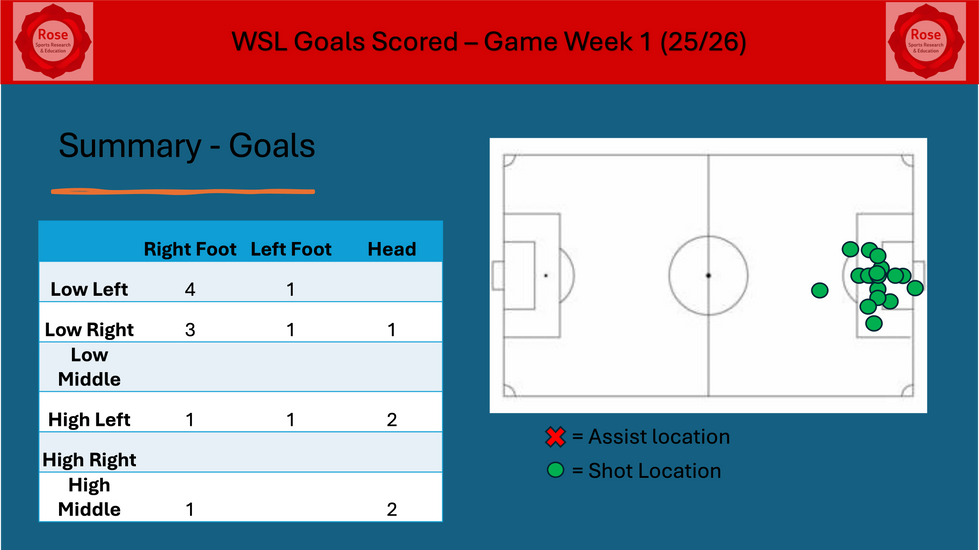 Check out Luke's powerpoint with some data on all the goals and assists from week 1 of the 25/26 WSL season. If you find this data useful then let us know on our socials!